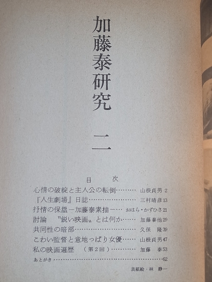 『加藤泰研究 第二号』 北冬書房 1972
